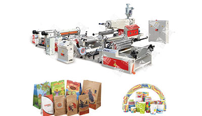 本系列設(shè)備以紙,塑膜,紡織布或鋁箔為基材,通過(guò)流延,一次復(fù)合成二層,三層(夾心復(fù)合),廣泛應(yīng)用于食品包裝,藥品包裝等各行業(yè)。如制作口杯,方便面碗,飼料包裝袋,醫(yī)用衛(wèi)材,快餐盒,無(wú)紡布袋。